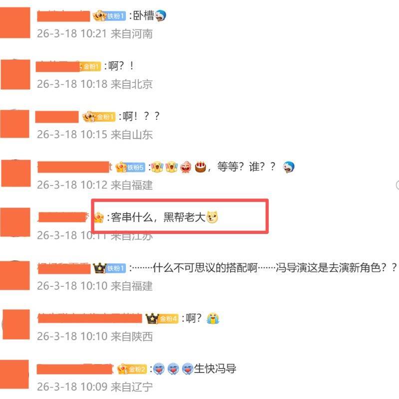 还有东谈主看到冯小刚后,忍不住吐槽谈:“客串什么,黑帮大哥?”