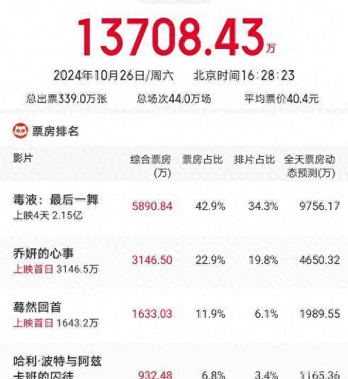 最近这几天,中国内地影院又迎来了多部新片体育游戏app平台,其中由索尼影业出品的漫威超等骁雄大片《毒液:临了一舞》,仅用不到四天的技术就得益了超2亿东谈主民币的票房,它的出现算是让一直处于冷淡期的中国内地市集有所回暖。 至于其他新上映的电影,各自的票房阐发却齐不是很出色。