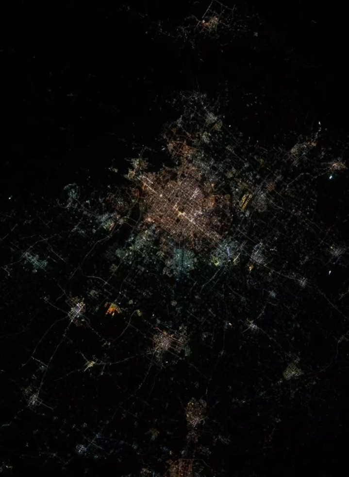 航天员汤洪波从中国空间站拍摄的北京夜景(图片来自光明网)