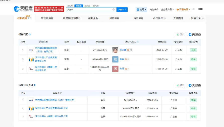 因两家公司存在高管关联,深振业A被视为新凯来意见股。天眼查信息涌现,新凯来的实质控股推动深圳市要紧产业投资集团有限公司,其董事黄秀章同期兼任深振业的监事。此外,黄秀章还同期兼任中芯海外的监事。