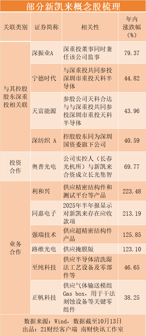 此外,奥普光电、同惠电子、利和兴等多家与新凯来存在投资或业务和洽的公司均股价高涨。而在10月10日、13日两连板的新莱应材、凯好意思特气,虽也被商场视为新凯来意见股,但章程当今两家公司均尚未正面确定干系和洽。其中,凯好意思特气在8月28日回话投资者称,章程当今公司与新凯来尚未开展和洽。新莱应材则暗意,公司的具体客户信息属于生意神秘。