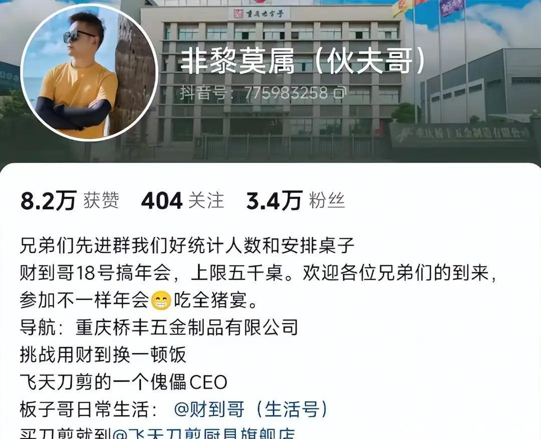 随后有网友便扒出了这位榜一年老信得过身份,果然不绵薄啊,这位榜一年老,也即是呆呆刨猪汤盛宴在后厨烧火的伙夫哥,竟然亦然重庆腹地东说念主,在重庆开有一家五金成品公司,买卖作念的很大,难怪他入手这样大气呢!