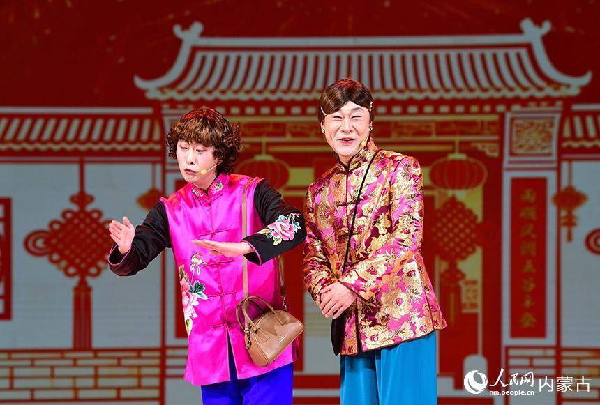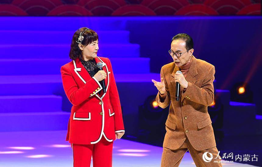 着名演员巩汉林、金珠在内蒙古曲艺春晚上饰演小品《幸福糊口》欧洲杯体育。王正摄