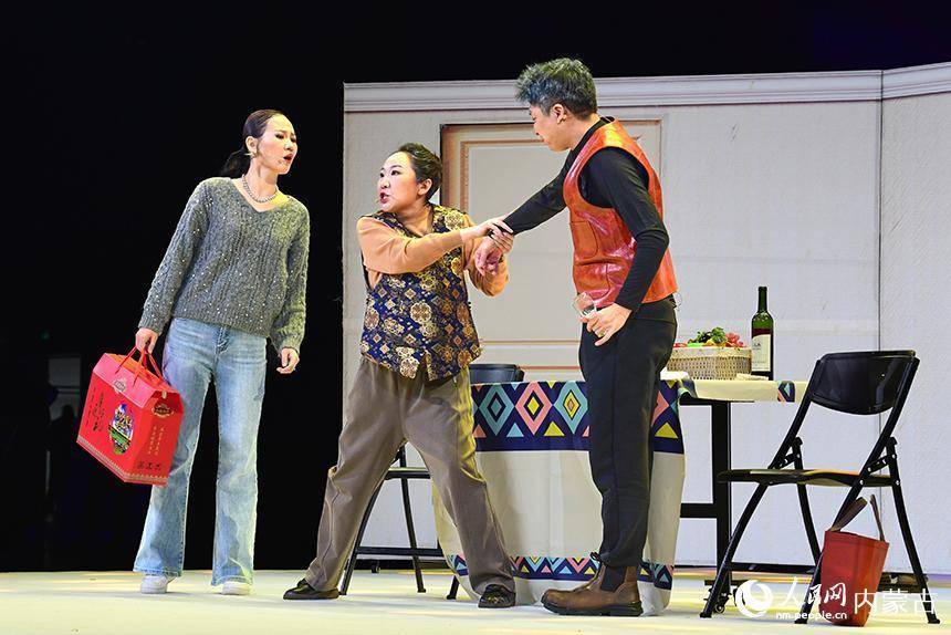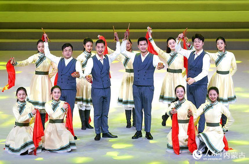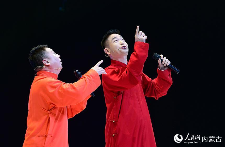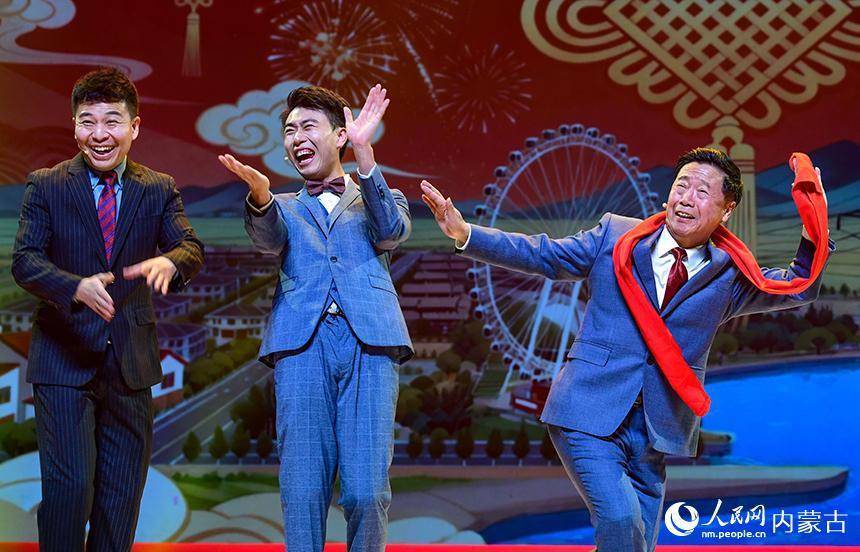 演员在内蒙古曲艺春晚上饰演群口相声《接待您到内蒙古来》。王正摄