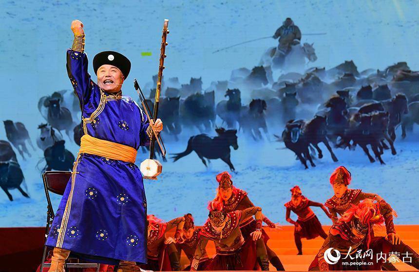演员在内蒙古曲艺春晚上饰演好来宝《科尔沁走马赞》。王正摄