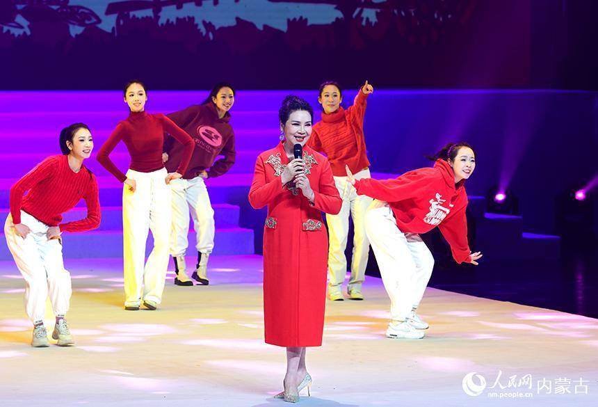演员在内蒙古曲艺春晚上饰演曲艺串烧《石榴花开火相同红》。王正摄