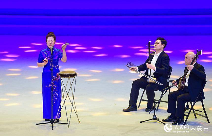 演员在内蒙古曲艺春晚上饰演西河大饱读《玲珑塔》。王正摄