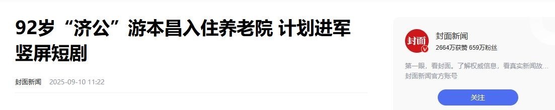 部分参考贵府起头:封面新闻|92岁济公游本昌入住养老院红星新闻|92岁游本昌入住养老院,辟谣儿女不孝听说
