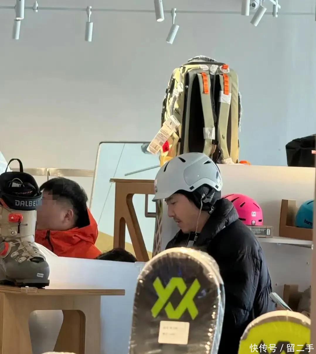 在雪具店,身穿白色卫衣、玄色长款羽绒服,180cm的沈腾相配显眼。头戴鸭舌帽的他,看着比之前瘦不少。