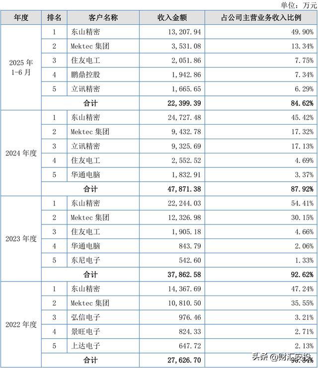 公司主要客户包括东山精密、Mektec集团等巨匠PCB行业的头部企业。