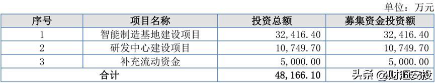 公司本次召募资金投资名堂包括“智能制造基地诞生名堂”、“研发中心诞生名堂”及“补充流动资金”,拟召募资金4.82亿元。