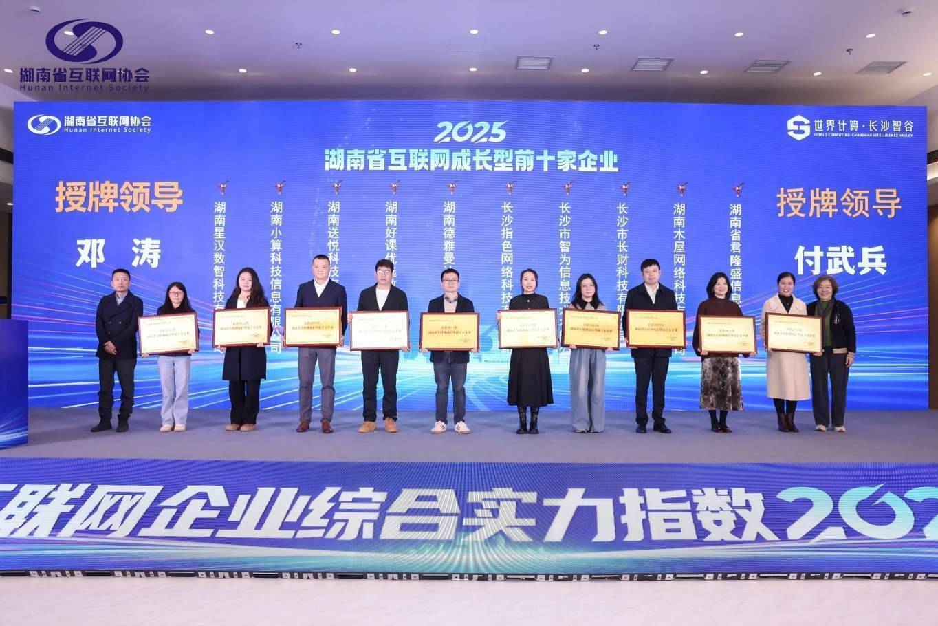 湖南好课优选荣获“成长型企业10强”。单元供图12月12日,2025年湖南省互联网企业50强榜单在长沙恰当发布。湖南好课优选训诫科技有限公司凭借超卓的改换实力和成长分解,再次入选“成长型企业10强”榜单,成为湘江新区在线训诫限制惟一统一两年获此荣誉的企业。